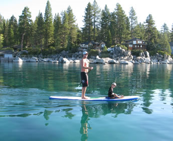 The latest craze to hit the Tahoe area is a cross between kayaking and surfing. Paddle boarding is where you stand on an oversize surfboard and paddle across or around the lake. Our large selection of boards can hold up to 300 pounds. Learn to ride today!